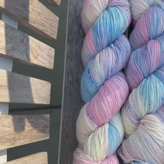Vask og pleje: Vaskes i hånden og tørres liggende. For at bevare både farve og fibre bør du kun vaske dine strikkede ting, når det er nødvendigt. Vask separat, da der kan forekomme en lille mængde overskydende farvestof i håndfarvede garner.